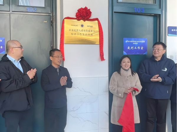 哈尔滨工业大学机器人研究所常务副所长、世界技能大赛机器人系统集成项目中国专家组组长李瑞峰、上海发那科机器人有限公司部长封佳诚、山东栋梁科技设备有限公司产教融合中心副总经理陈涛、电气工程学院院长孙勤出席本次揭牌仪式。