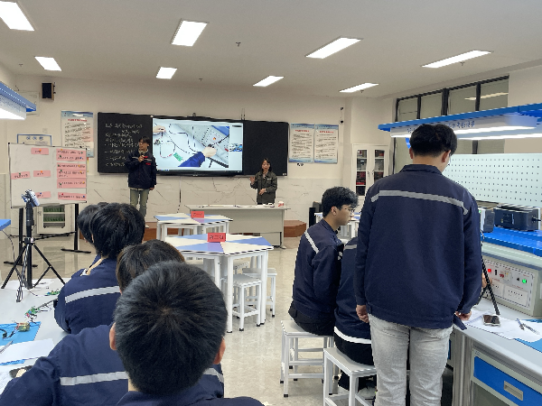 教学过程中,思政元素的融入自然而深刻。李玲老师结合电路调试中 “精准接线”“规范操作” 的要求,引导学生领悟 “工匠精神” 中严谨细致、精益求精的内涵;整个教学过程中,李玲老师鼓励学生直面问题、协作解决,潜移默化传递 “攻坚克难、团结互助” 的职业素养,实现技能培养与价值引领的同频共振。整堂课师生互动频繁,从理论提问到实操指导,从小组讨论到成果分享,学生始终保持高度专注,主动举手提问、积极展示成果,参与度达 100%,课堂氛围热烈而有序。